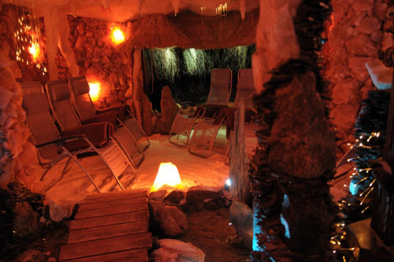 Grota Solna wypełniona jest powietrzem bogatym w jod, żelazo, magnez i mangan, ułatwiając przywrócenie równowagi jonowej i mikroelementowej w organizmie. Ponadto, działa to korzystnie podczas leczenia depresji i nerwic oraz likwiduje przemęczenie i napięcie towarzyszące sytuacjom dnia codziennego. W trakcie organizowanych seansów inhalacyjno-relaksacyjnych do dyspozycji jest 14 rozkładanych leżaków. Czas umili Państwu specjalnie dobrana muzyka relaksacyjna oraz subtelny dźwięk źródełka solankowego. Seanse rozpoczynają się o pełnej godzinie i trwają po 45 minut.